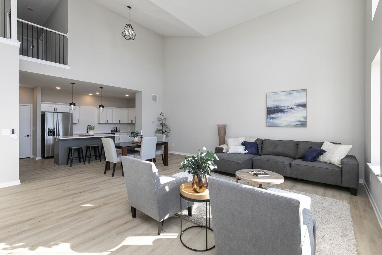 This Waukee townhome offers a floor plan you don't typically find, unlike the other townhomes nearby. Vaulted ceilings and oversized windows flood the main level with natural light, showcasing light wood colored floors, white cabinetry, and neutral finishes throughout. The open layout flows seamlessly from the living area into a well-appointed kitchen featuring stainless steel appliances, quartz countertops, generous cabinet space, and a large pantry. A convenient half bath rounds out the main level. Upstairs, you will find a primary suite with a double vanity ensuite, shower w/ a glass door and an exceptionally large walk-in closet. The second bedroom is generously sized and is complemented by an additional full bath. Laundry is also conveniently located on the upper level. A 2-car garage completes this home. All appliances stay. Come take a look at this move in ready townhome. You will not be disappointed!