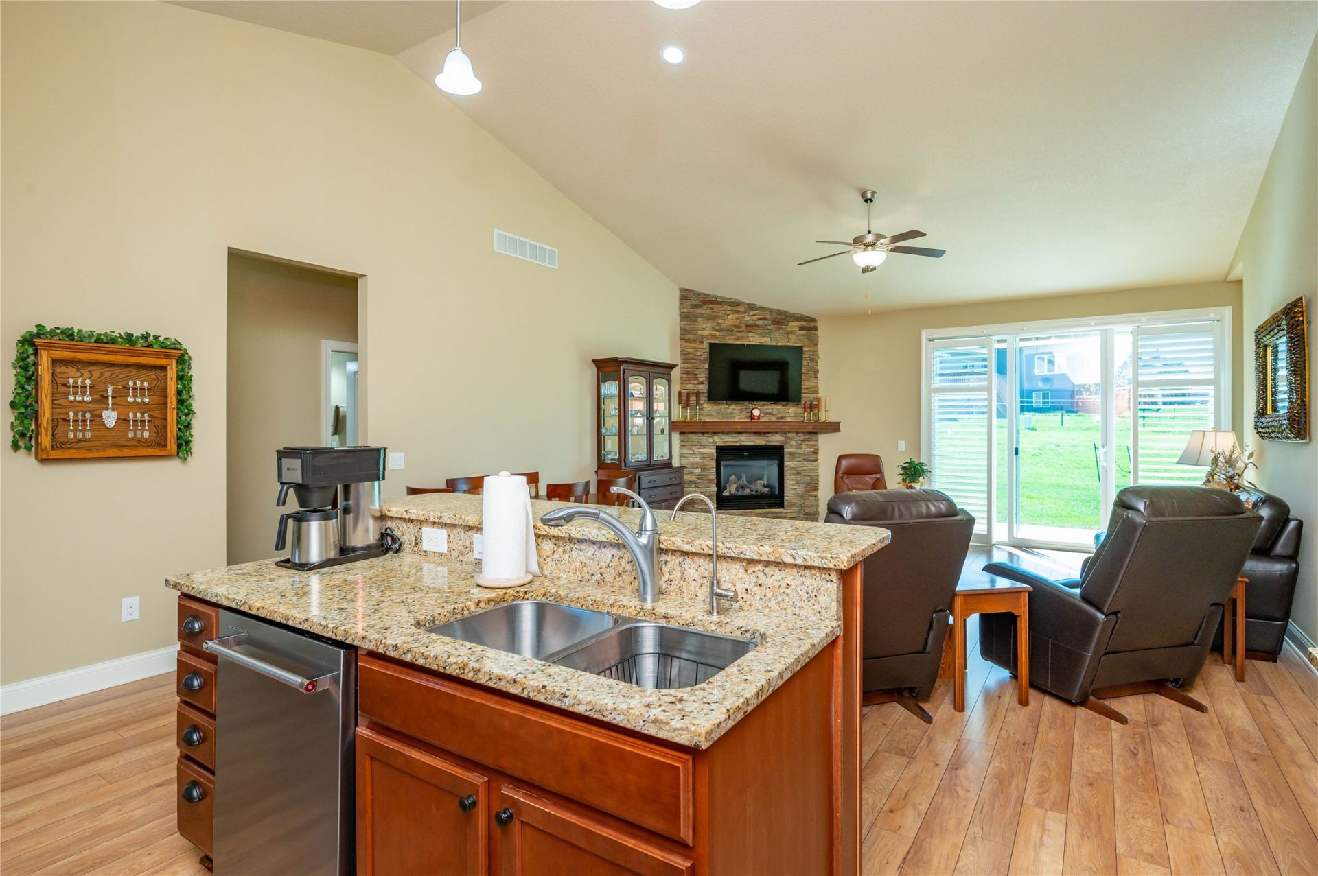 Beautiful ranch villa in pristine, move-in ready condition located in the sought-after Tuscany development of Altoona. This open concept home offers spacious living with gorgeous hardwood floors, abundant natural light, and quality finishes throughout. Oversized primary suite features a large bedroom, walk-in closet, convenient laundry access, and private bath with soaker tub and walk-in shower. Finished lower level provides a large rec room, 4th bedroom, and 3/4 bath -perfect for guests, hobbies, or extra living space. Enjoy outdoor living on the patio with automated awning. Oversized 3-car garage offers exceptional storage and convenience. Low HOA dues include lawn care and snow removal for easy maintenance-free living. Major updates include new roof (2022), new carpet, and newer appliances. Fantastic Altoona location near trails, shopping, dining, and entertainment. Rare opportunity for easy living in a premium community!