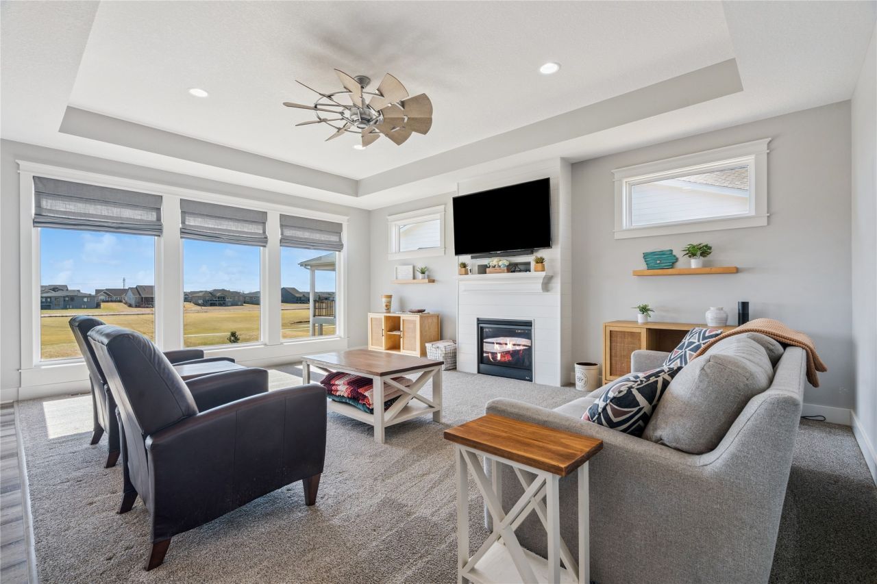 Don't miss this beautiful ranch located on the 3rd and 5th holes of Otter Creek Golf Course in highly desirable NE Ankeny. This home offers over 2,600 square feet of finished living space with golf course views and a layout designed for comfort and functionality. The bright living room features large windows overlooking the course, bringing in natural light and scenic views year-round. The home includes 4 bedrooms (2 up, 2 down) and 4 bathrooms with a bathroom on each level, giving everyone their own space. Car lovers and hobbyists will appreciate the massive 4-car garage with a 26-foot deep stall; perfect for a boat, workshop, gym, or extra storage. Beneath the extended garage is an additional storage area with direct backyard access. The kitchen includes a hidden pantry, and the home also offers flexible laundry options with hookups in the mudroom for main-floor laundry or laundry located in the basement. Additional features include a heated garage, service door from the garage, irrigation system, pre-wired hot tub hookup, covered deck, patio, firepit area, and welcoming front porch. Golf course views, incredible garage space, and a great NE Ankeny location make this one a standout.