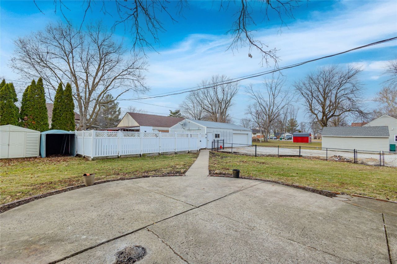 Built in 1925, this timeless two-story home blends historic character with thoughtful updates, set on a huge corner lot surrounded by mature trees that provide beauty and shade through every season. The fully enclosed front porch offers a warm welcome and the perfect place to enjoy morning coffee, read a book, or unwind in the evening. Inside, soaring ceilings, original hardwood floors, and beautifully preserved trim showcase craftsmanship that cannot be replicated today. The main level features a formal living room with a cozy wood-burning fireplace, a formal dining room ideal for gatherings, a charming sitting room, and a convenient half bath that adds everyday functionality. The kitchen pairs modern quartz countertops with classic style, creating a space that works beautifully for both everyday living and entertaining. Upstairs, three comfortable bedrooms offer peaceful retreats and continue the home's timeless appeal. Outdoors, the expansive patio, fully fenced yard, heated above-ground pool, and swing set create an inviting space for summer memories and relaxed outdoor living. An oversized three-car garage adds rare storage and flexibility. Additional updates include a newer roof, radon mitigation, a furnace humidifier installed in 2025, and a water softener. This is more than a house, it is a place where history, warmth, and modern living come together, ready for its next chapter.