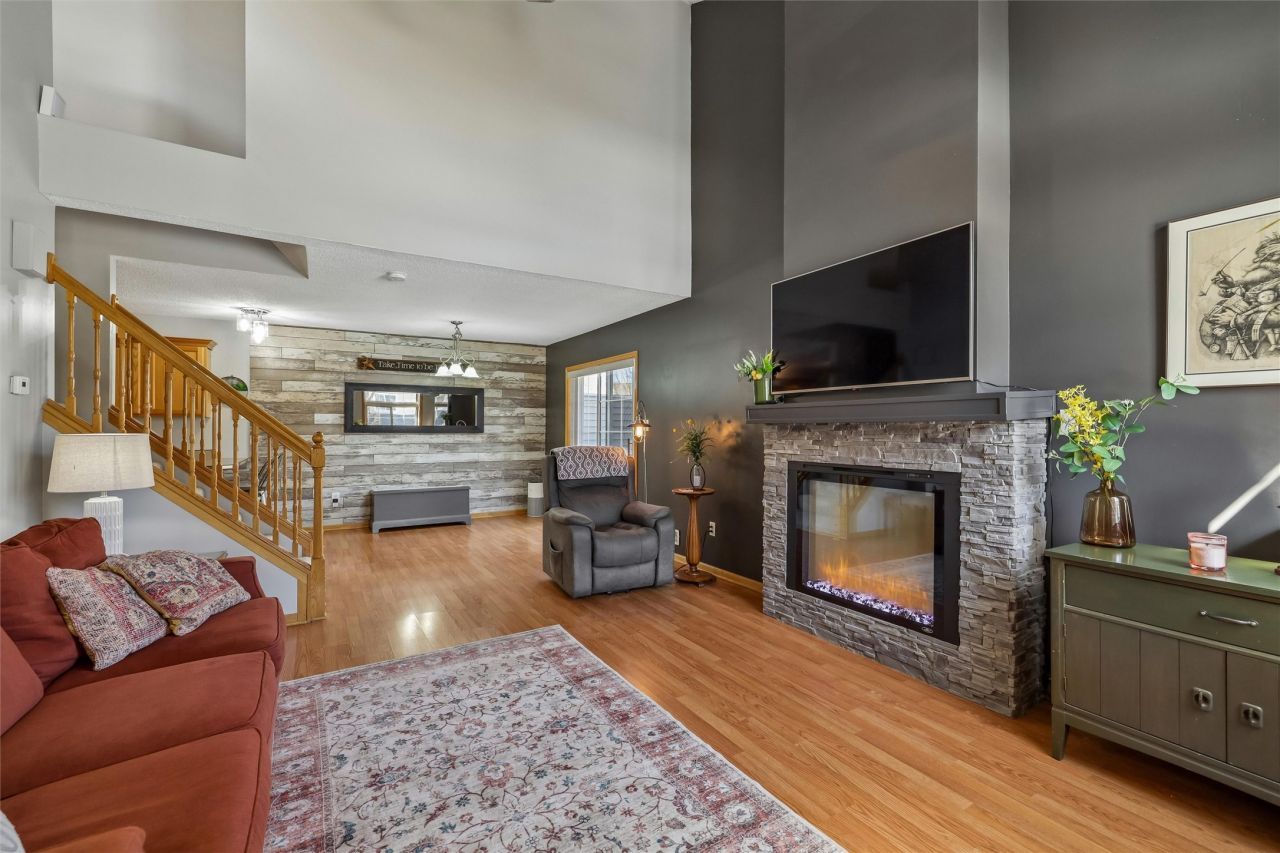 Charming end unit townhome in move in ready condition with lots of good updates! Pulling up to this home you'll find this end unit next to the greenspace and convenient visitor parking spots. Upon entering you'll find a spacious family room with vaulted ceiling, stone surrounded fireplace with newer electric insert fireplace. The open concept kitchen offers all stainless steel appliances included, plenty of cabinet space, lots of counter space including a peninsula island, and pantry closet under the stairs. The dining area is right off the kitchen and family room and offers a barnboard accent wall and slider to the new patio. The main level is rounded off with a half bath and two car garage. Upstairs you'll find two spacious bedrooms both with walk in closets, a 3/4 bath, laundry with washer and dryer included, and a bonus loft that could be used as an office, reading nook, or kids play area. Upgrades include: new street/driveway/patio 2025, washing machine 2025, stove 2024, carpet 2024, dishwasher 2023, roof 2021, air conditioning/furnace/hot water heater 2019. All of this wrapped up in a convenient location close to grocery, shopping, dining, and interstate access to zip around town!
