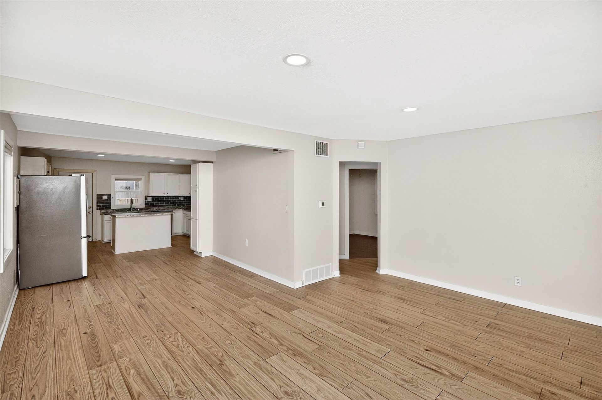 Welcome to this updated one-story home on the east side of Des Moines, offering 1,113 square feet, 3 bedrooms, and 2 bathrooms. Step inside to an inviting open floor plan where the living room seamlessly connects to the kitchen?perfect for both everyday living and entertaining. The home features newer LVP flooring throughout and a well-appointed kitchen with stainless steel appliances, tile backsplash, ample cabinet space, and a center island for added functionality. The primary suite offers a private retreat with a 3/4 bathroom featuring a tiled shower and a spacious closet. Conveniently located just off the primary suite, the washer and dryer are included, along with all kitchen appliances. Two additional bedrooms and a full bathroom complete the main level. Situated on a generous 1/4-acre lot, the property includes a detached two-car garage and a large yard with plenty of space to enjoy the outdoors. Conveniently located near East High School, with easy access to downtown Des Moines and I-35, this home offers both comfort and convenience.