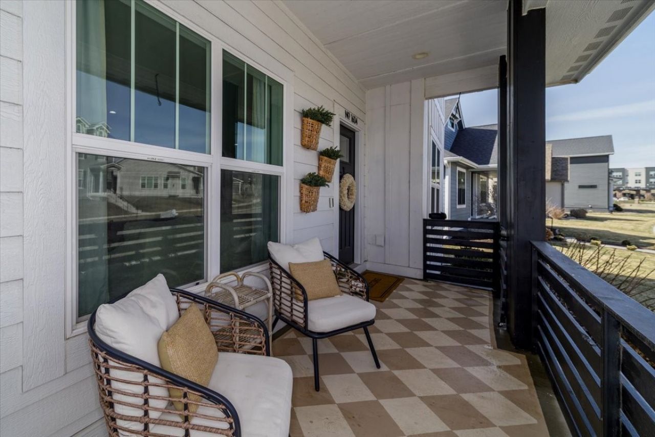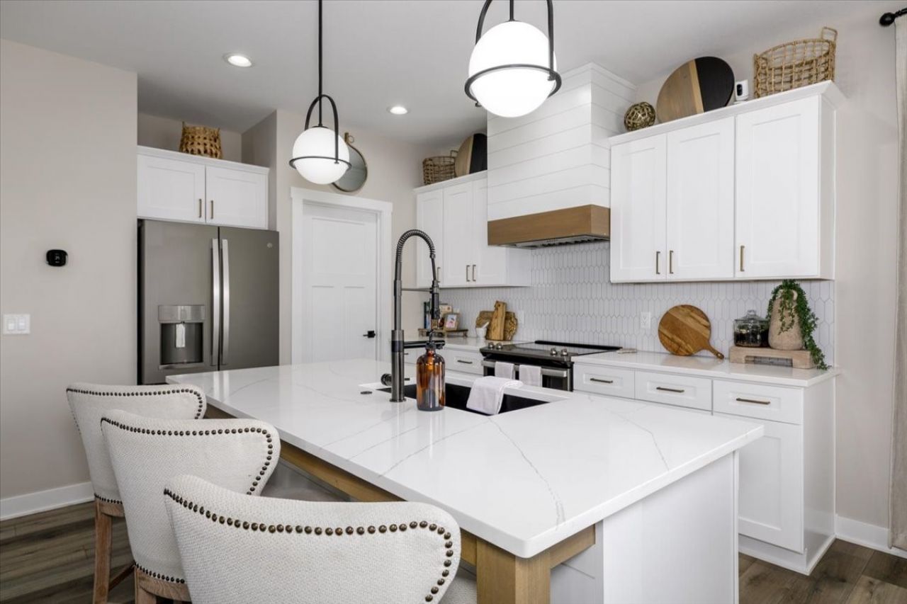 This custom finished Elevated Builders resale has been carefully curated to create a gorgeous and functional home. The upgrades start before you even step inside including a gated front porch and smart irrigation system to keep the hydrangeas lush and blooming all summer long. Just inside is the light-filled, open concept main level featuring a stone fireplace that reaches all the way to the 10' ceiling and a kitchen that boasts quartz countertops, gorgeous appliances, boutique hardware, a commercial hood vent, and a walk-in pantry that seems to go on forever. As you head upstairs, you'll notice two more property improvements: a one-of-a-kind architectural niche for stylish display and functional storage as well as LVP flooring throughout the entirety of this home's 2,500+ finished square feet for timeless style and effortless cleaning. The second floor is home to an airy, vaulted primary suite, two large bedrooms, and a laundry room so spacious and cute that folding clothes might just not feel like a chore. The finished basement has a perfect bonus living space, fourth bedroom with custom lighting and storage, as well as a third full bathroom. The three car garage has built-in storage. The yard is fenced. A radon mitigation system has been installed. The nightlife, shopping, and entertainment of The District at Prairie Trail is practically in your backyard. What more could you need? Schedule your showing today!