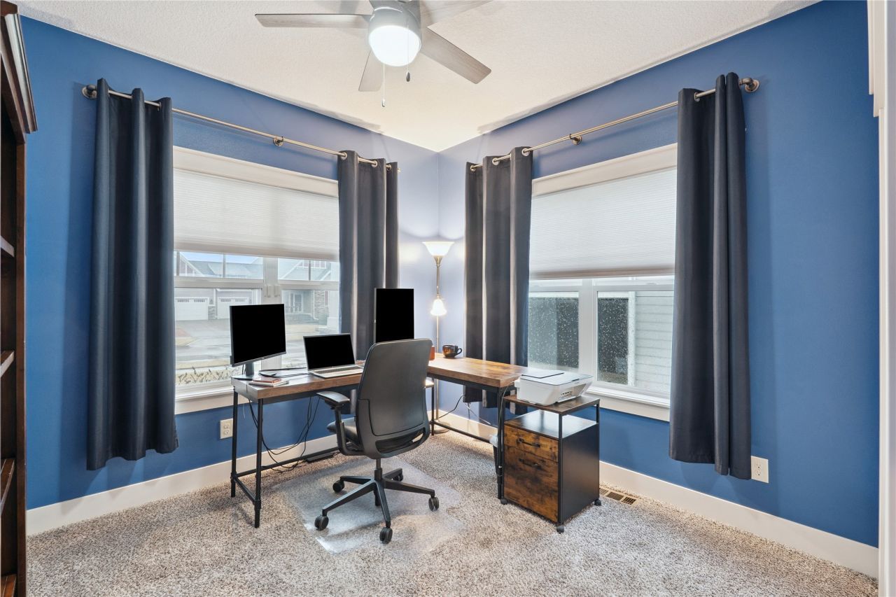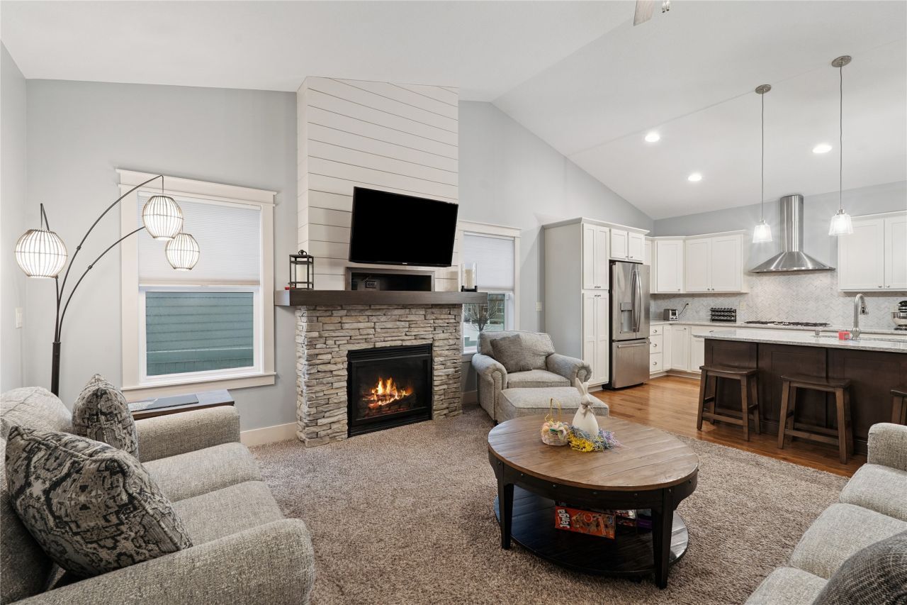 Curb appeal and character abound in this 5 bed/3 bath Prairie Trail ranch home! Step on in from the inviting front porch and make yourself at home, where you'll love the custom touches/upgrades throughout in this 2400+ total sq ft home. The spacious living room is anchored by a beautiful stone surround fireplace with shiplap accent extending to the height of the home's vaulted ceilings. All stainless steel appliances stay in this open-concept kitchen (gas range, hood vent, dishwasher, refrigerator, wall oven/microwave). Quartz countertops, tile backsplash, and pantry cabinet are an added bonus for both style and function. The engineered hardwood floors lead to a designated dining area. The primary suite offers a sizable bedroom with walk-in closet. The spa-like bathroom includes a fully tiled shower w/glass door, tile floors, quartz countertops, and dual sink vanity. Rounding out the main floor are 2 additional bedrooms, one currently being used as an office, in addition to a laundry room/drop zone (washer/dryer stay) as you enter from the attached 3 car garage. The finished basement offers 2 more bedrooms, full bath, and living area with wet bar complete with wine fridge. This home offers amazing outdoor space with room to entertain on the back deck and patio and enjoy the nearly quarter acre yard. Located just blocks away from Cascade Falls Aquatic Center, nearby elementary school, parks, and all the shops and amenities offered in The District. Schedule your showing today!