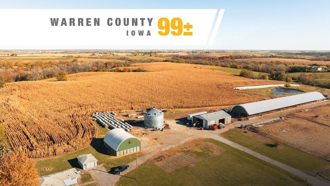 99± Acre Cattle & Grain Farm ? Turnkey Beef Operation 17021 Tyler St, Lacona, IA 50139 Exceptional 99± acre cattle and grain farm in southern Warren County featuring 45± tillable acres for crops or hay, with the balance in pasture, recreation, and two ponds. The setup includes a 365' x 48' hoop feed building with 7 paddocked lots, 4 automatic waterers, curtain vents, and capacity for 320 head. Additional improvements include a 45' x 35' commodity shed, 20,000-bushel Sukup grain bin with dryer, and 42' x 63' Morton machine shed. Heavy-duty fencing, concrete pads, and bunks provide a clean, efficient livestock layout. The 1,100± sq. ft. ranch home offers 2 beds, 1 bath, a full basement, and a new septic system ? located just one mile off pavement, ideal for an owner-operator or family seeking comfortable country living. A ready-to-go operation blending feedlot, pasture, and tillable acres ? built for efficiency and long-term success. Directions: From Lacona, west on Hwy G76 (6.1 mi), north on Hwy 65 (1.5 mi), east on Tyler St (1 mi). Property on left. Parcels: 1100014066, 1100014069, 11000140640