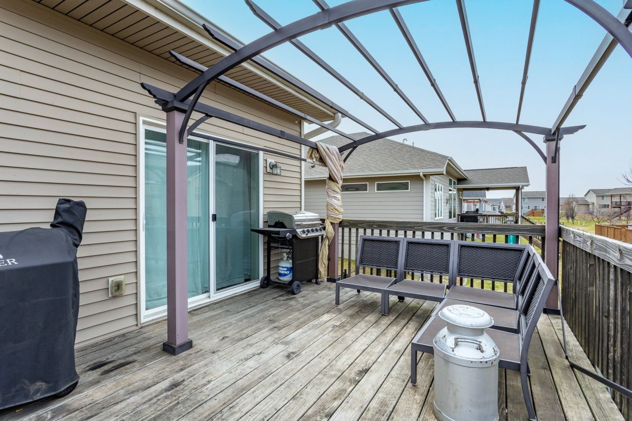 Beautiful 4-bedroom, 3-bath home offering 2,425 sq. ft. of finished living space, including 1,425 sq. ft. on the main level plus a finished daylight basement! The main floor features a bright, open kitchen with white cabinetry, granite countertops, black stainless appliances, and a corner pantry that flows seamlessly into the living room with a cozy fireplace. The dining area opens to a 12x18 deck, making it perfect for entertaining or relaxing outdoors. Convenient main-floor laundry is located just off the garage and includes built-in lockers and shelving for added functionality. The primary suite features a walk-in closet and private bath with shower, while an additional hall bath with glass doors serves the remaining main-level bedrooms. The finished daylight lower level adds even more living space with an additional bedroom, ¾ bath, and a spacious family room. Also an additional room with a washer dryer hook up and utility sink. Perfect for a workshop or craft room. Additional highlights include a 3-car garage, 2x6 construction, 9-foot ceilings on main floor, and an irrigation system. This home offers the perfect combination of comfort, style, and functionality. Also, A VA loan that is assumable at 2.75 percent makes this home affordable to a qualified buyer. Contact your agent for details.