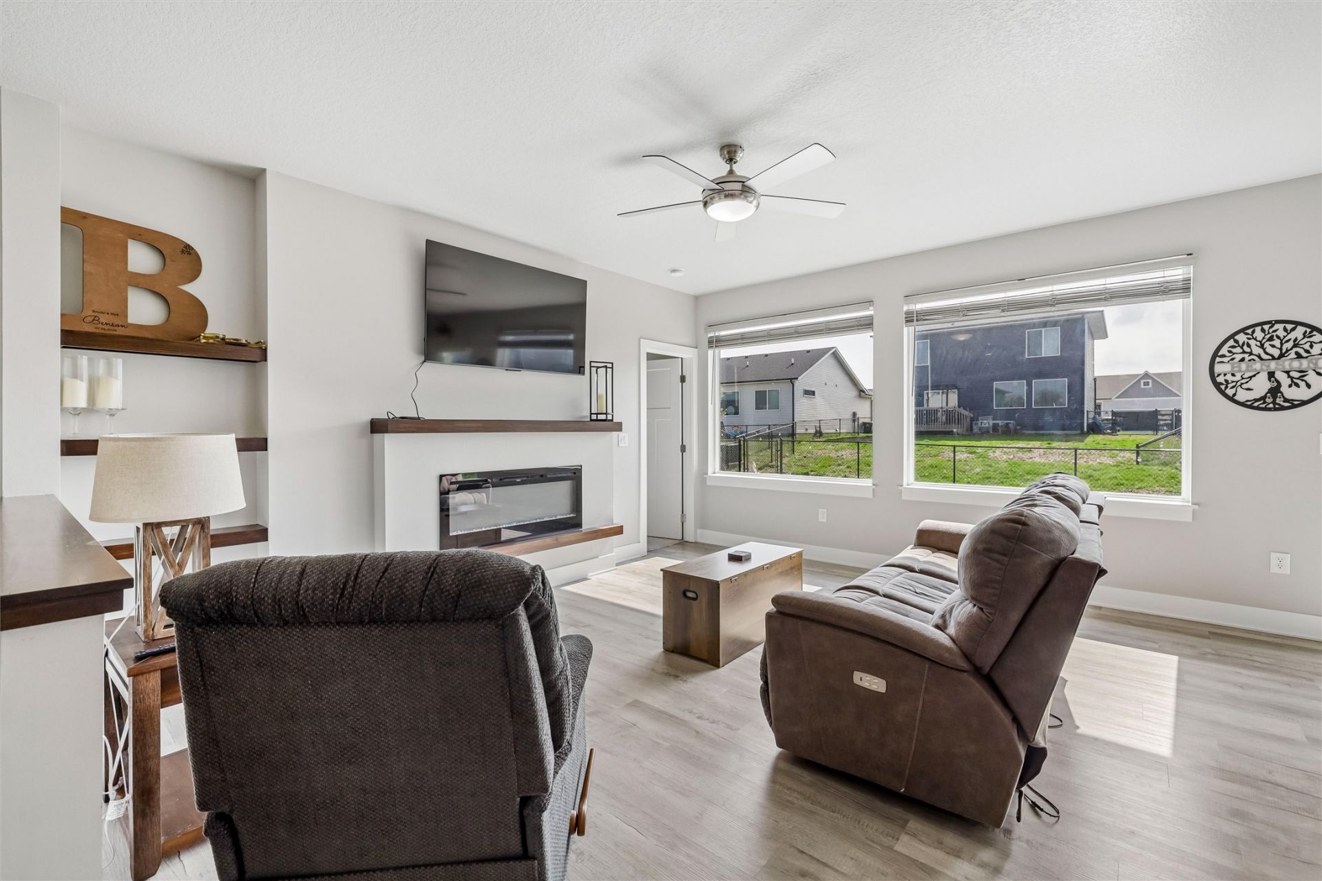 Destiny Homes ranch with a spacious open floor plan that lives large. The kitchen features a corner pantry, center island, and generous dining area, all flowing into the great room with fireplace. The primary suite offers a walk-in closet and private bath with double vanity and shower. Crisp neutral finishes throughout. An additional main-level bedroom, full bath, mudroom, and laundry add everyday convenience. The finished lower level includes a rec room, third bedroom, 3/4 bath, and abundant storage with space for exercise equipment or future office finish. Outside, enjoy a custom patio and fully fenced yard. Better than new! All information obtained from seller and public record.