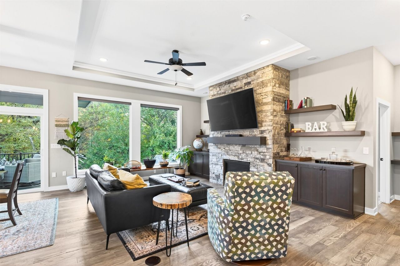 Beautiful ranch in Heritage at Grimes! This 2020-built home offers over 1,800 sq ft on the main level with a fully finished walkout basement. Enjoy 4 spacious bedrooms and 3 full baths, including a lower-level suite with egress and bonus workout space. The open-concept main floor features a stunning kitchen with double ovens, remote-controlled blinds throughout, and a front office with custom built-ins. The walkout basement boasts a gorgeous custom island and entertainment area, perfect for gatherings. Step outside to the covered patio with roll-down garage door creating an outdoor kitchen space, fully fenced yard, firepit, and new front landscaping. Located on a quiet cul-de-sac near Dallas Center-Grimes schools and Grimes amenities!