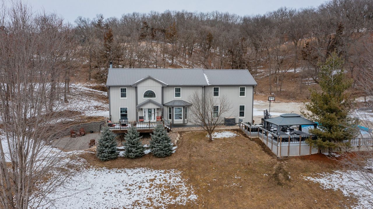 DEER HUNTER'S DREAM in Peru, Iowa. 4 Bed with 5th non-conforming!!!! If you've been waiting for the perfect hunting acreage ? this is it.2533 290th Street sits on over 26 acres with food plots, upgraded deer blind, and established timber that draws wildlife right to your backyard. Morning coffee watching deer walk through your property? Yes please.Inside, this home has been beautifully remodeled with a stunning 2025 kitchen featuring quartz countertops, custom soft-close cabinetry, heated floors, under-cabinet lighting, and an open-concept layout perfect for entertaining. Updated bathrooms, finished basement, new windows, new furnace, steel roof and siding ? the big-ticket items are DONE.Outside you'll find multiple composite decks, above-ground pool with concrete surround, stamped concrete, steel shed with concrete floors, chicken coop, garden space, and room to roam.Hunt. Entertain. Relax. Repeat.This is Iowa country living at its finest.