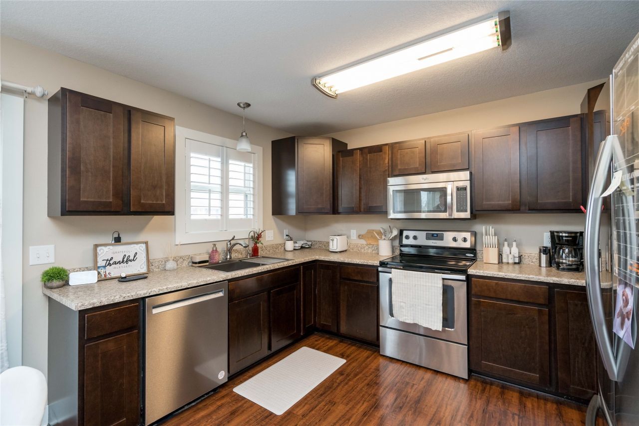 Tucked away on a quiet, low-traffic dead-end street, this 4 bedroom, 3 bath home in Norwalk offers the space and layout a lot of buyers are looking for. Finding a 4-bedroom home with a finished basement, and this much space in Norwalk doesn't come around very often. Right when you walk in, you'll notice the natural light coming through the home along with the desirable white trim, updated paint throughout, and nice flooring that gives everything a clean, move-in ready feel. The kitchen features stainless steel appliances, a large sink, and plenty of cabinet space, making it a comfortable spot for everyday cooking and gathering. Tray and vaulted ceilings add a nice touch of character, and the spacious closets throughout the home provide storage that can be hard to come by in other homes. Upstairs laundry adds a lot of convenience, and the primary bathroom has been updated with a new shower surround for a fresh look. Downstairs, the finished basement gives you additional living space along with a fourth bedroom and full bathroom - perfect for guests, a home office, or a second living area. Out back, a sliding glass door leads to the deck overlooking the partially fenced yard, giving you a great spot to relax, grill, or let pets play. All of this sits in a convenient Norwalk location close to schools, parks, shopping, and an easy commute into the Des Moines metro.