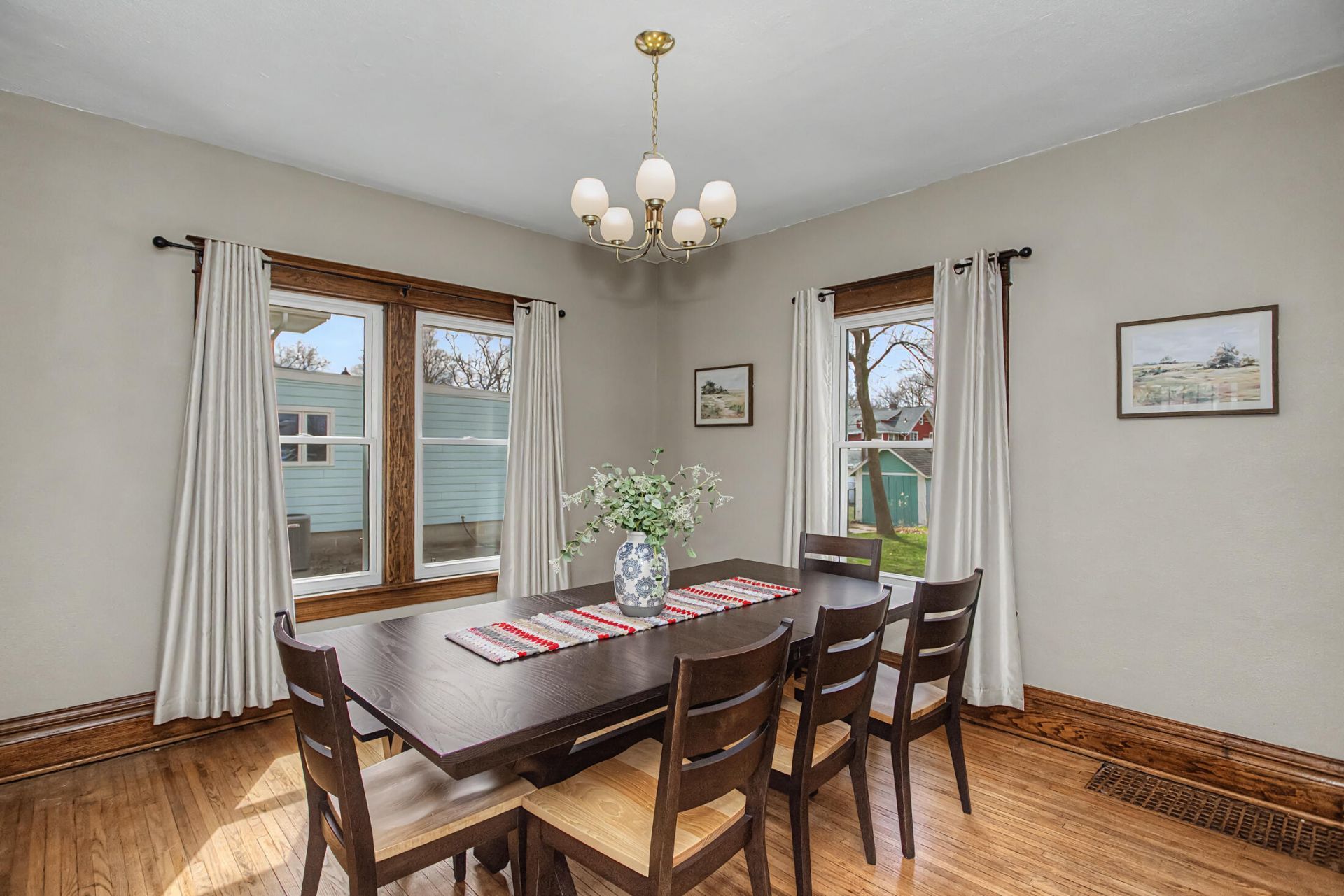 This home is delayed showing until 4/13/26 at noon. If you appreciate homes with true character, this one stands out in all the right ways. Located in the heart of Ames, this large two story home offers an abundance of square footage, original charm, and the convenience of a two car garage, all within walking distance to Jack Trice Stadium, Main Street, and nearby amenities. Inside, you'll immediately notice the craftsmanship, including wide original wood baseboards, detailed trim work, stained glass accents, and beautiful hardwood floors that bring warmth and personality throughout.The main level features a welcoming living room anchored by a fireplace that serves as the focal point, with beautiful built ins alongside that lead into the dining room. The layout continues into the dining area and kitchen, along with a remodeled half bathroom, main level laundry, and a bright four season sunroom off of the living room that adds even more usable space.Upstairs, all four bedrooms are impressively sized and each includes a walk in closet. The full bathroom has been fully remodeled and offers great functionality along with ample storage.Major updates include all new windows, brand new electrical throughout, and updated HVAC. This home also has durable steel siding. Outside, enjoy the beautiful front porch, along with a nicely sized yard and two car garage. This is a large, character-filled home with thoughtful updates and room to truly spread out in a prime Ames location.