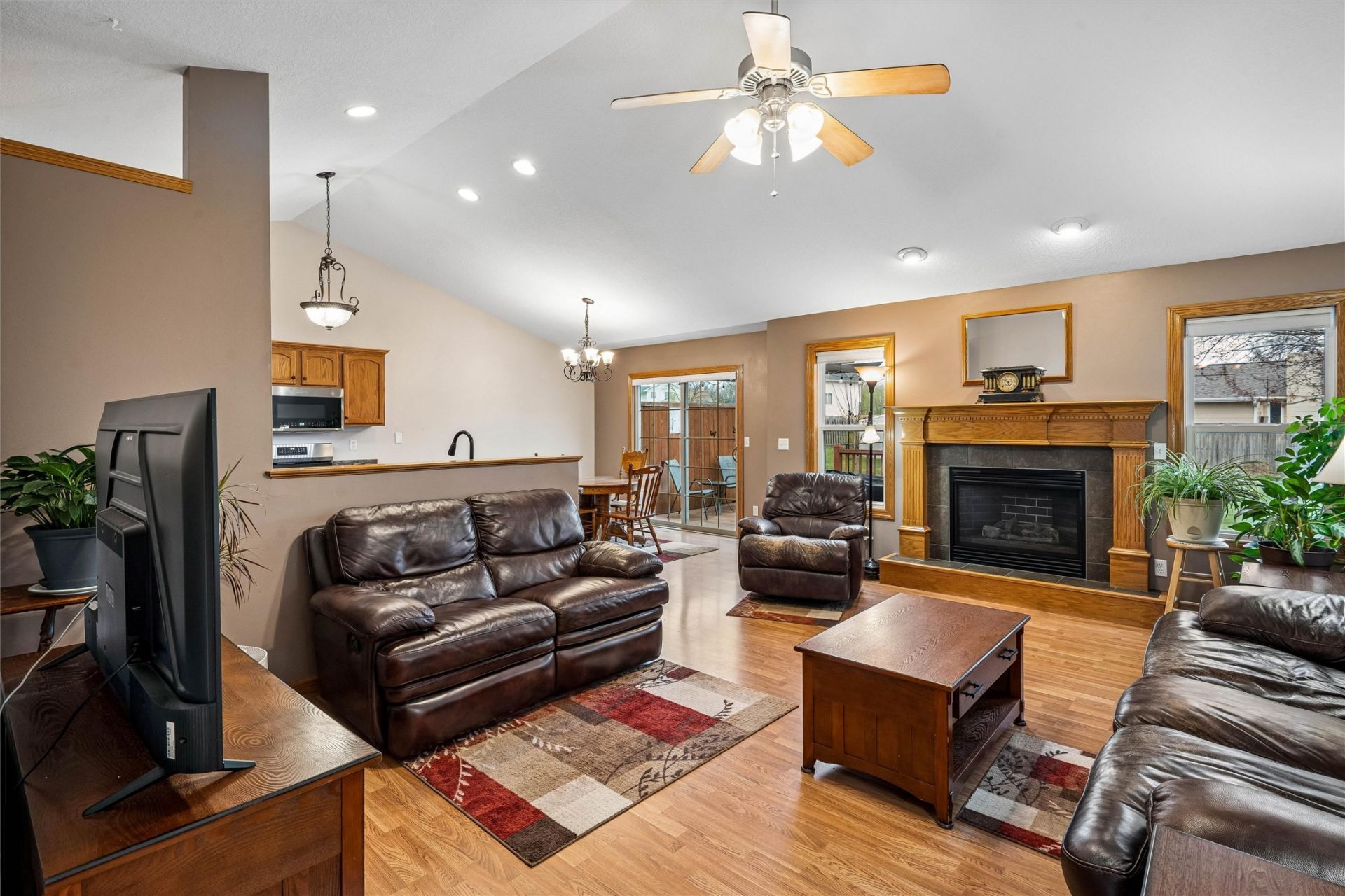 Well-maintained and move-in ready ranch in a prime SW Ankeny location! This home offers 3 bedrooms and 2 full bathrooms on the main level, paired with a functional layout and great natural light throughout. The vaulted ceilings and gas fireplace create a welcoming main living space, while the spacious kitchen features a pantry, all appliances included, and easy flow into the dining area, an ideal layout for comfortable everyday living and entertaining extended family. Main level laundry adds convenience, and the attached 2-car garage is complemented by an oversized 3-stall-wide driveway for additional parking. The lower level expands your living options with a ¾ bathroom featuring a tiled shower, a cedar closet, and a finished storage/utility room that doubles perfectly as a workshop or hobby space. Step outside to enjoy the fully fenced backyard complete with mature landscaping, a large deck for gatherings, added privacy, and a storage shed. This property checks all the boxes with space, functionality, outdoor entertaining space, and a fantastic Ankeny location just minutes to Prairie Trail. Very easy to show and flexible possession is available, please call an agent today for a private tour for more information.