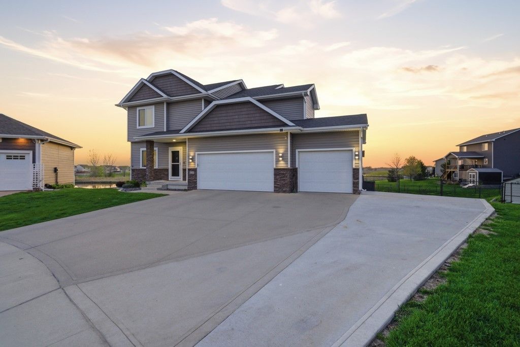 This is a rare opportunity to own a walkout home with a yard of this size in Bondurant! The fully fenced backyard, irrigation system, and great views overlooking ponds and greenspace makes this property stand out right away, not to mention a heated and cooled three car garage with epoxy floors. Inside, you will find fresh paint throughout, along with new LVP flooring on both the main level and basement. The main level features 9 foot ceilings and a spacious living room with a fireplace. The kitchen offers lots of cabinet and countertop space along with a corner pantry featuring custom shelving. Upstairs includes four bedrooms, highlighted by a large primary suite with a tray ceiling, walk in closet, and an en suite bathroom featuring an oversized tiled shower with dual shower heads. The finished walkout lower level adds even more living space with a second family room, fireplace, wet bar, additional bedroom and bathroom, with direct access to the patio and backyard. Additional features include a storage shed, a fourth parking pad with camper hookup, stamped concrete landscape edging, and updated trim work throughout the main level and upstairs.