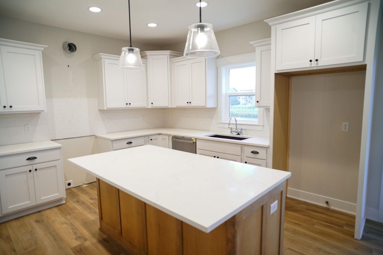 This two-story home offers an open main level with a center-island kitchen, hidden walk-in pantry with built-ins, and a living room featuring a floor-to-ceiling stone fireplace. A flex room, mudroom with built-ins, and half bath complete the first floor.Upstairs, the vaulted primary suite includes a tiled shower, soaker tub, double vanities, and walk-in closet with direct laundry access. Three additional bedrooms share a full bath with double vanities and tile surround.