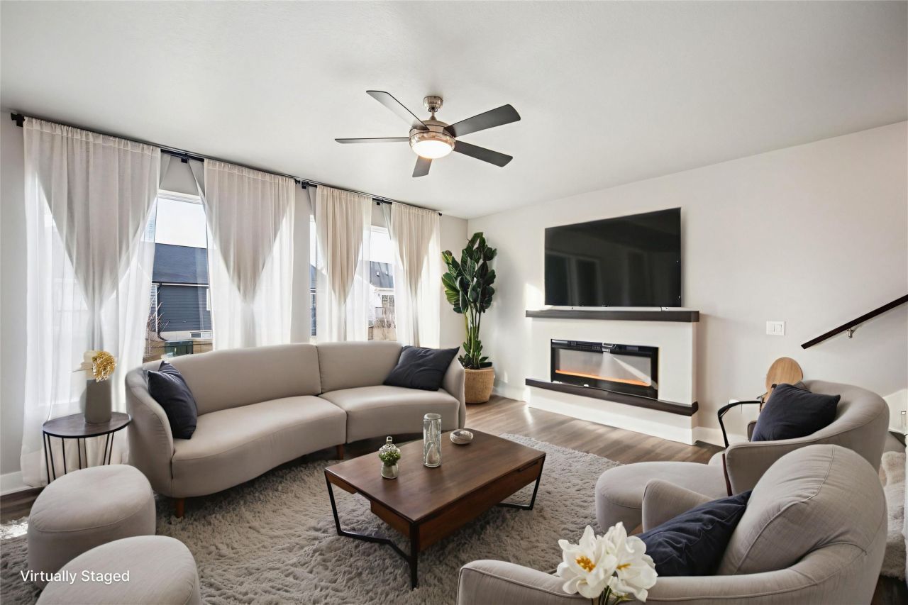 With over 2500 square feet of finish, you will have plenty of room to grow in this immaculate two story. As you enter, you will fall in love with the 9 foot ceilings, LVP flooring and office space. Enjoy cooking in the sparkling kitchen with quartz countertops, gas oven, pantry and center island. The living room is bathed in sunlight with massive windows. Upstairs you will find the primary suite with a walk in closet, private bath with dual sinks, shower with upgraded glass door and a water closet. There are three additional bedrooms, laundry room with custom shelving and a full bath. Unwind in the finished basement with a spacious family room and ¾ bath. Enjoy the outdoors from the covered patio overlooking the fenced yard. Other great features include a security system, linear electric fireplace, stone landscaping border around the perimeter of the house and cement board siding. Incredible location near parks, trails and Waukee schools. Some photos virtually staged.