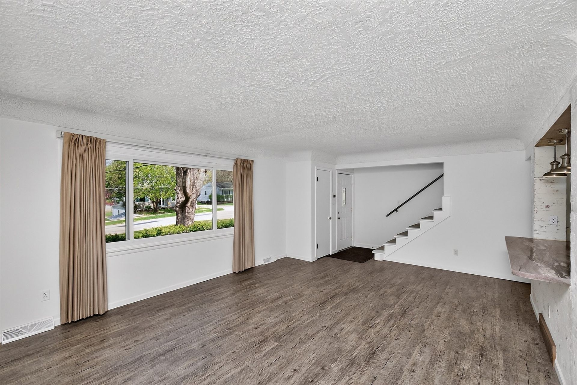 Spacious and full of charm, this unique 1.5-story Urbandale home sits on an incredible nearly 1-acre lot?one of the largest you'll find in town! Inside, the large family room welcomes you with beautiful coved ceilings and flows seamlessly into the open dining area and updated kitchen featuring white cabinetry, double island, abundant storage, and all appliances included. The oversized primary suite is a true retreat with a cozy brick fireplace, sliding doors to the back deck, convenient laundry hookups for optional first-floor laundry, and a large walk-in closet. The ensuite bathroom offers a custom double vanity, soaker tub, separate shower, and plenty of storage. Two additional main-floor bedrooms are located near an updated full hall bath. Upstairs, you'll find two more spacious bedrooms with original hardwood floors, charming nooks, large closets, and an additional half bath. The unfinished basement provides excellent storage space, extra laundry hookups, and walk-out access through the massive garage with double tandem parking. Outside, the .98-acre lot is truly the star?mature trees, peaceful nature views, a large back deck, and endless space for entertaining, play, or simply enjoying your own private retreat. Easy access to I-235 to get anywhere is the metro! A rare opportunity in Urbandale?come see today!