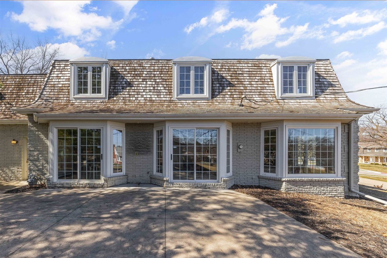 Welcome to one of Windsor Heights' most unique homes, showcasing timeless character and custom craftsmanship throughout. This stately Cape Cod-inspired home features a distinctive mansard roof, charming shaker accents & beautiful all-brick exterior. Step through the double front doors into a welcoming formal entry. To the left, the expansive living room is filled w/ natural light from stunning colonial-style floor-to-ceiling windows and features wood trim & a gorgeous fireplace w/ marble insets-an ideal space for gathering w/ family and friends. To the right, a cozy family room offers built-in cabinetry, bookshelves & a second brick fireplace. The kitchen sits just off the family room & connects to the formal dining room w/ a wet bar, creating a great flow for entertaining. Both spaces provide access to the large patio surrounded by beautiful landscaping & mature trees. Upstairs, the primary suite includes dual closets & full bath w/ double vanity. 3 additional bedrooms feature custom built-ins including desks, cabinets, shelving & detailed paneling showcasing the custom finishes & extra storage found throughout this home. At the end of the hall, a large shared family/hobby room w/ wet bar, wraparound cabinetry & shelving connects 2 bedrooms, offering flexible space for relaxing or projects. A second full bath completes this level. Recent updates include a new furnace, central air, upper-level windows & roof. Homes w/ this space & character are rare - don't miss it!