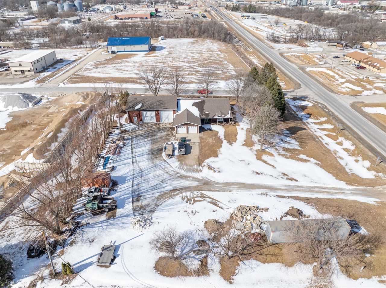 Commercial building located on Hwy 92 in Winterset. 1.13 acres with great highway frontage and high traffic count. Tons of parking for equipment and trucks. The house portion of the building has 2400 sqft. 3 bedrooms, 1 full bath, large kitchen/dining area and spacious family room. There is a portion of the building that is unfinished - that consists of 2 more bedrooms, a bathroom, laundry area and a general mudroom. 2 car attached garage. The shop portion is 2080sf. 2 overhead doors and an office space with a half bath. The door in the office space leads to more shop space with another overhead door and stairs to more storage in the loft space. THIS WOULD BE A GREAT INVESTMENT OPPORTUNITY - the current occupant would like to stay and rent the shop space. You could also rent out the house.